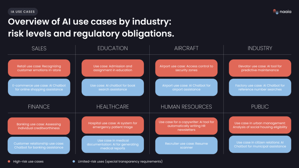 Overview of AI use cases by industry: risk categories and regulatory obligations